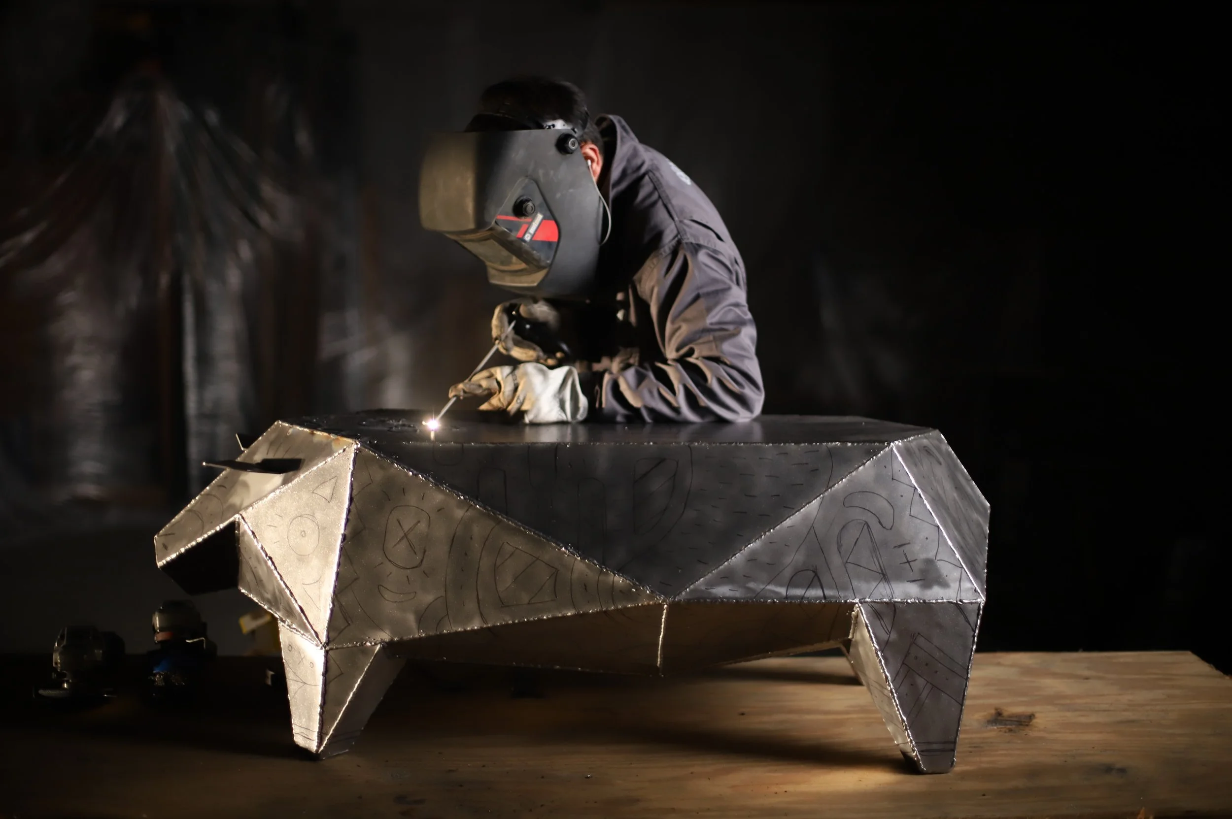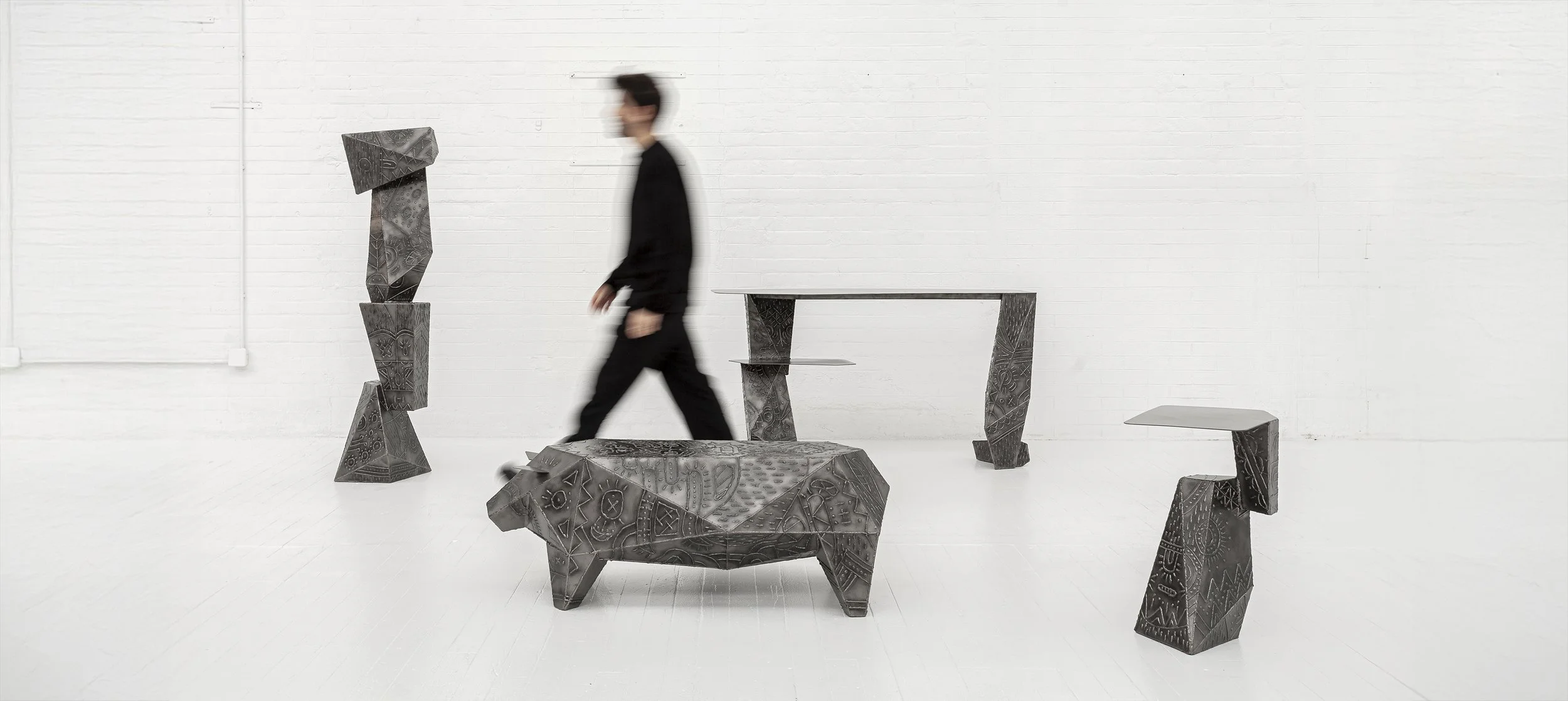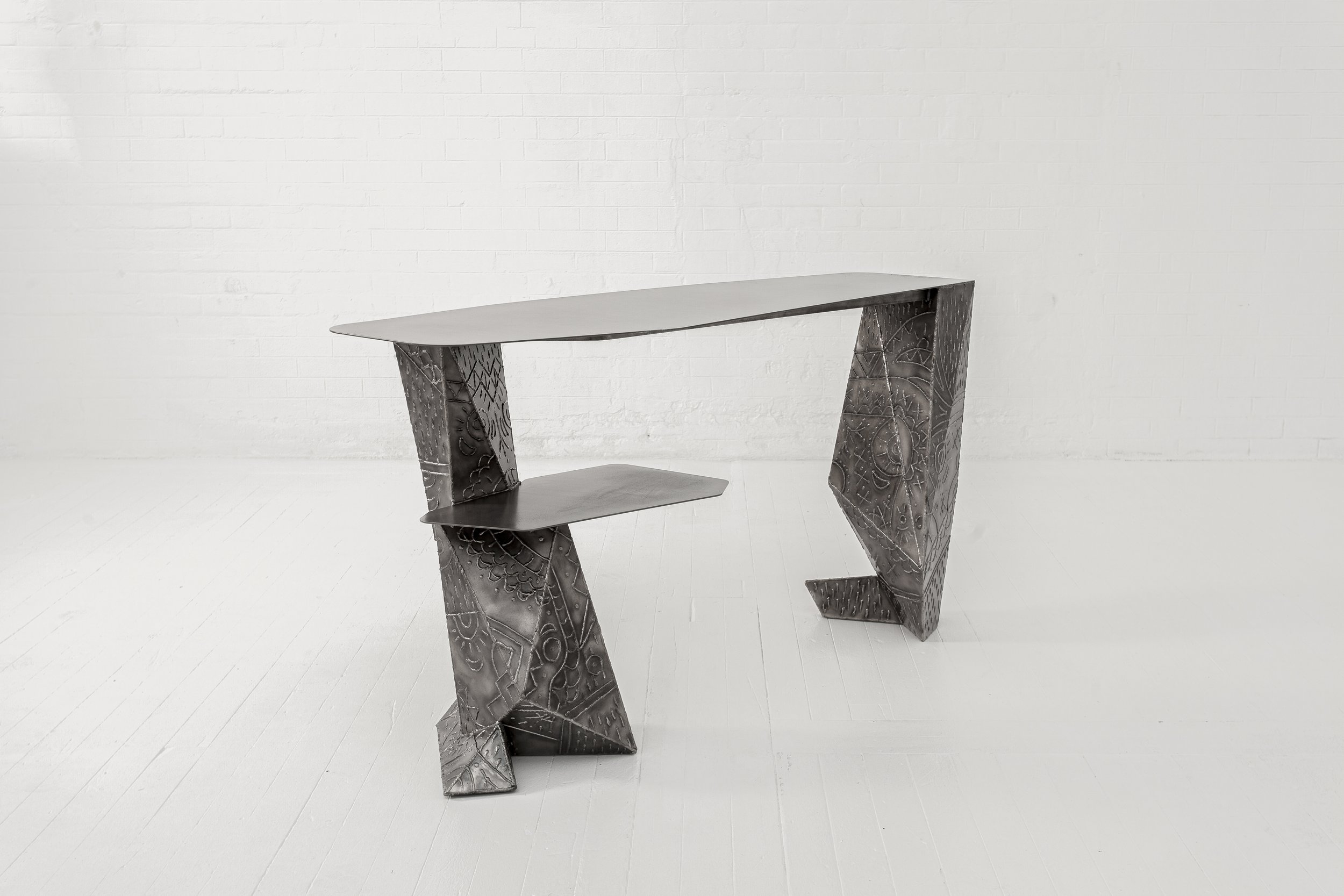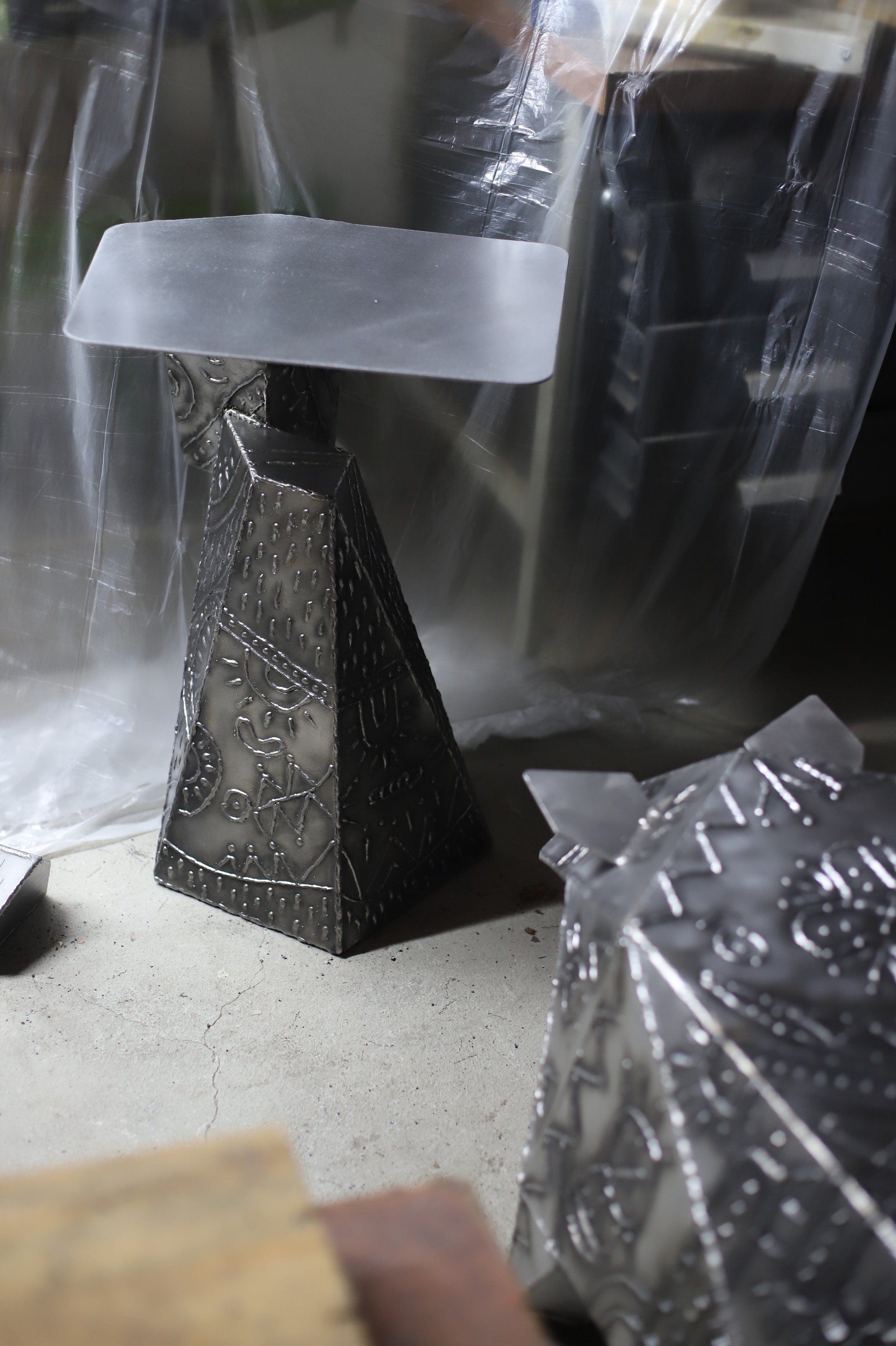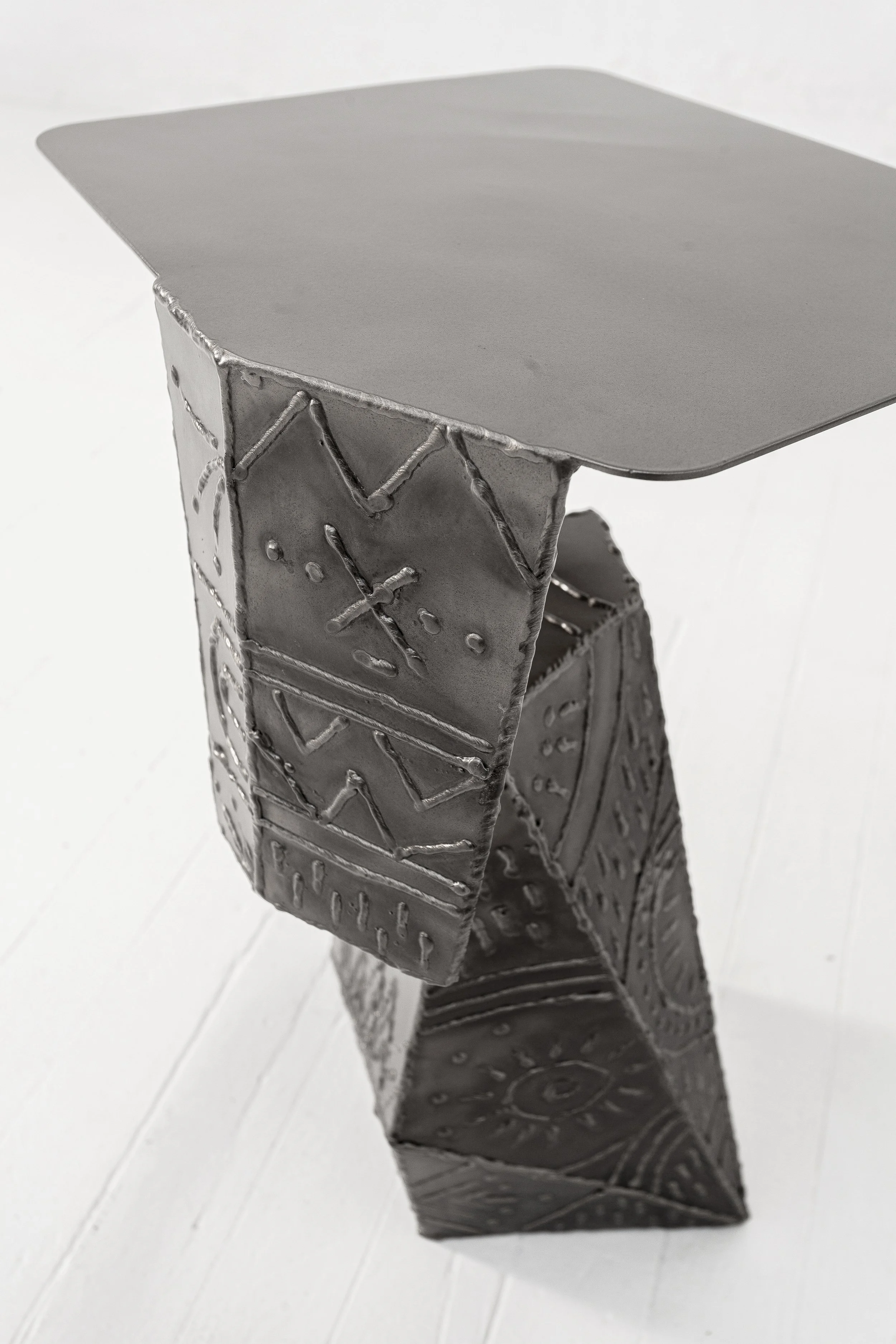 Inspired in techniques of aesthetic enhancement of the human body such as modern Tattoo’s and ancient Scarification rituals, the welding transforms plain metal surfaces into objects of adornment.